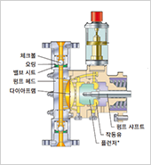 다이아프램(고무제 또는 PTFE제) 1개로 송액하는 방식입니다.