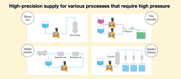 This pump has no rotating or sliding parts, which can easily generate foreign matter. This eliminates concerns about the liquid being contaminated.
