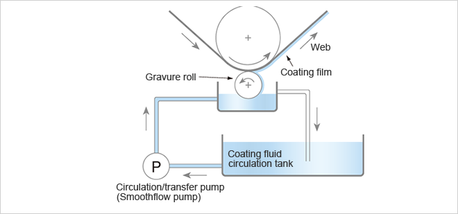 When transferring coating fluids to a gravure coater or a dip coater…